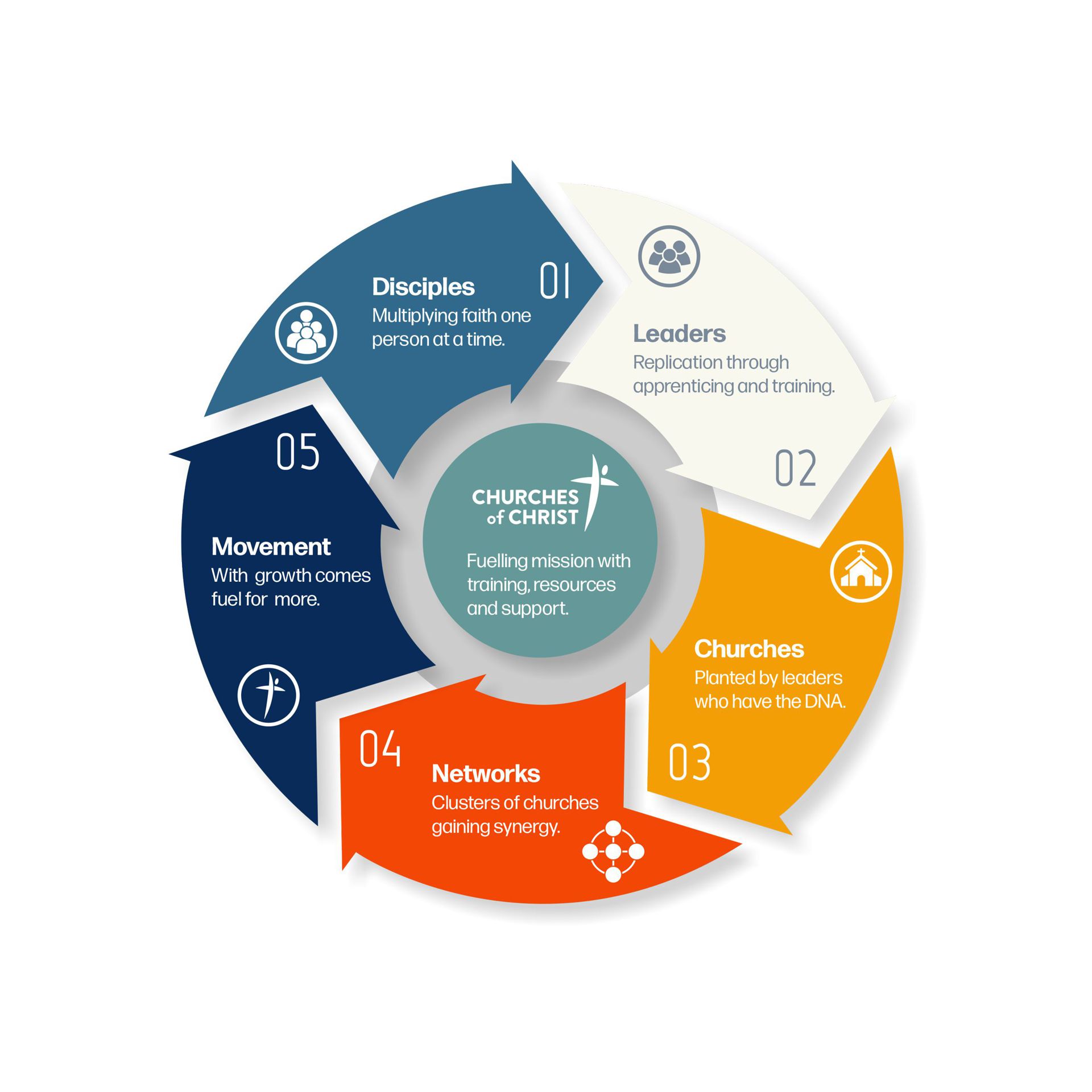Disciples become leaders, who plant missional communities, who build local networks, who grow our movement of Churches of Christ.